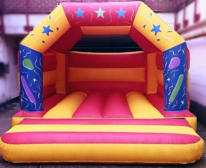 This Party Theme Bouncy Castle is very popular at children's parties and occasions of any kind. With reinforced seams , built in shower cover and a mesh netting at the back of the castle as an added safety feature. The front panels feature images of Party Balloons. This inflatable has been the highlight of many parties in and around East London. Availability is limited as bookings are often made a few weeks in advance, so we advise you call early to avoid disappointment!