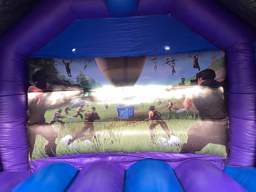 Step into the world of Fortnite with our exciting gaming bouncy castle. Perfect for gamers, this inflatable castle brings the popular game to life, allowing players to bounce and have fun in a thrilling Fortnite-themed environment.