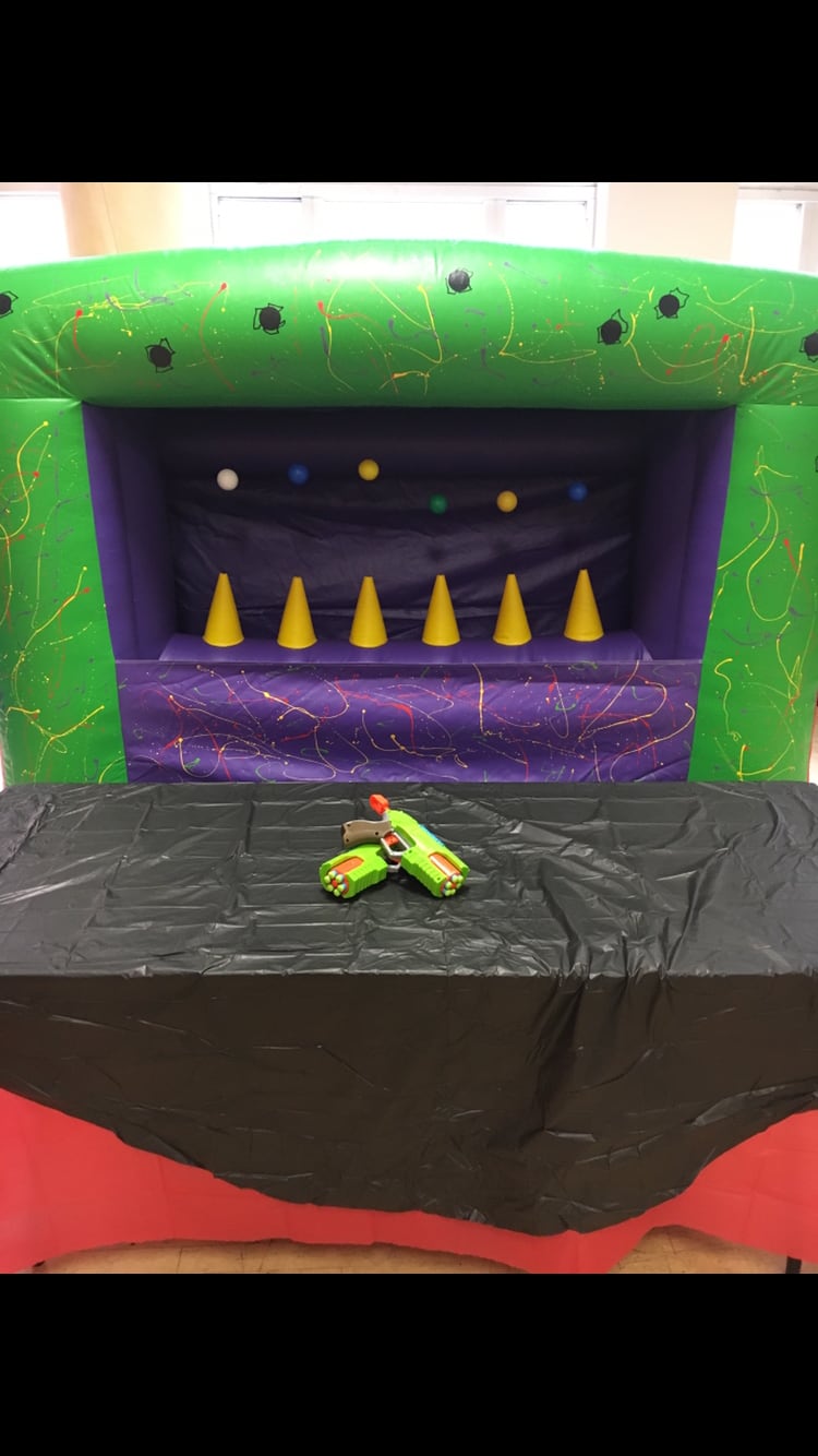 Practice your shooting skills with this NEW shooting alley. Suitable for all types of events or as an add on with one of our popular Party Time Medium Bouncy Castle . Recommended for over the age of 3.