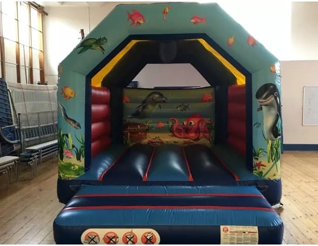 This Under water theme Bouncy Castle has been popular at many children's parties. With reinforced seams , built in shower cover and a mesh netting at the back of the castle as an added safety feature. The front panels feature images of dolphins and turtles.This inflatable has been the highlight of many parties in and around East London. Availability is limited as bookings are often made a few weeks in advance, so we advise you call early to avoid disappointment!
