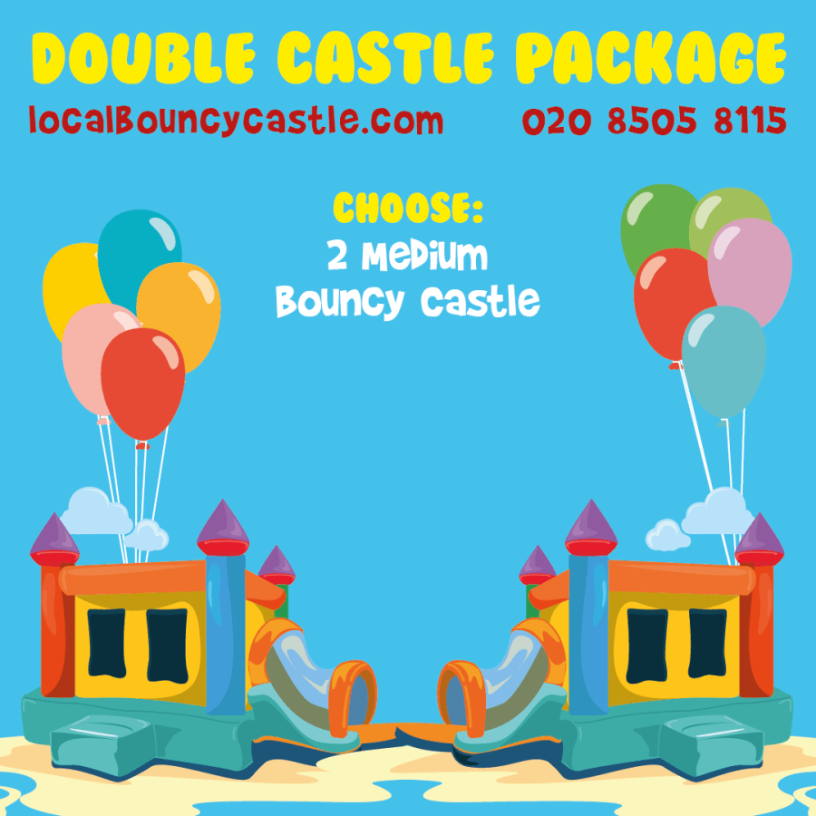 This package makes it even more fun with a 2 medium bouncy castles for your party.